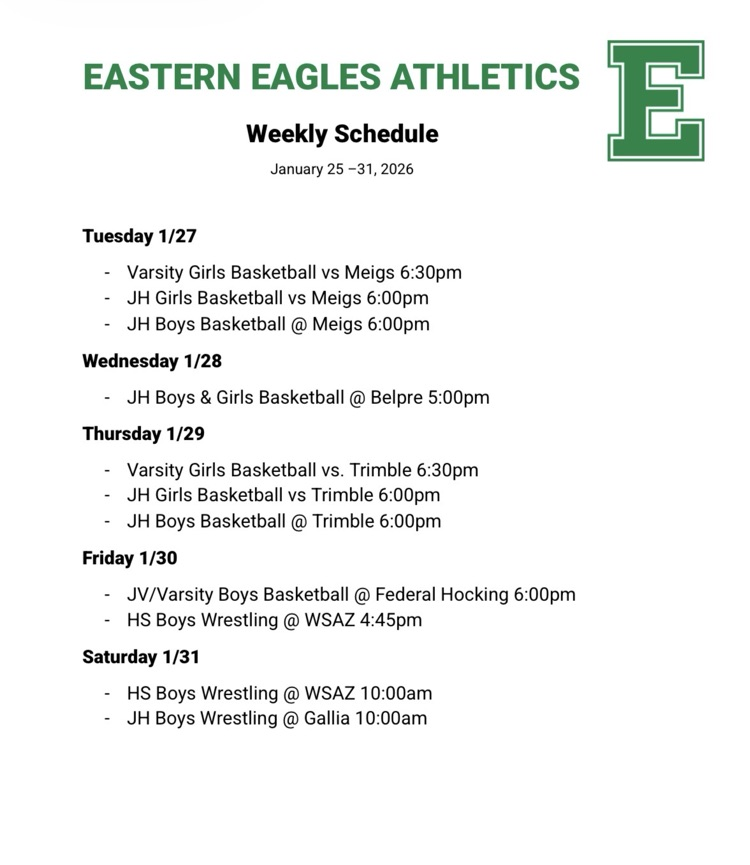 Athletics Scheduke for 1/25-31