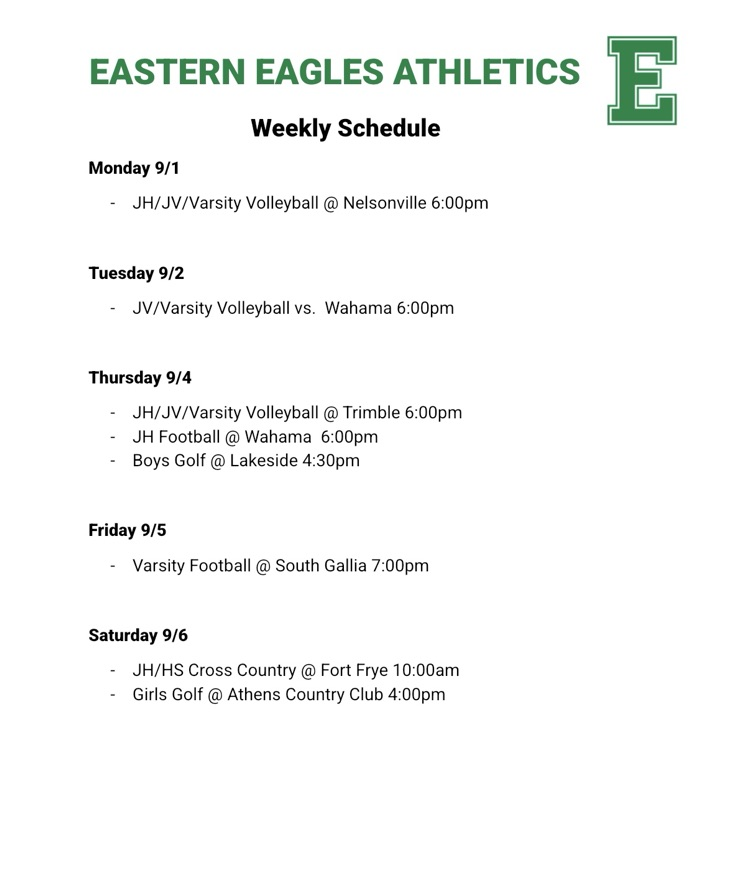 Eastern Local Schools will host Parent Night on Tuesday, September 2nd, from 5:00–7:00 p.m. for grades 3–12.